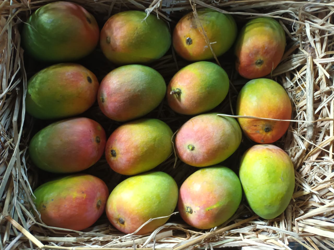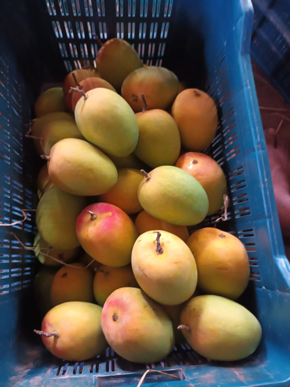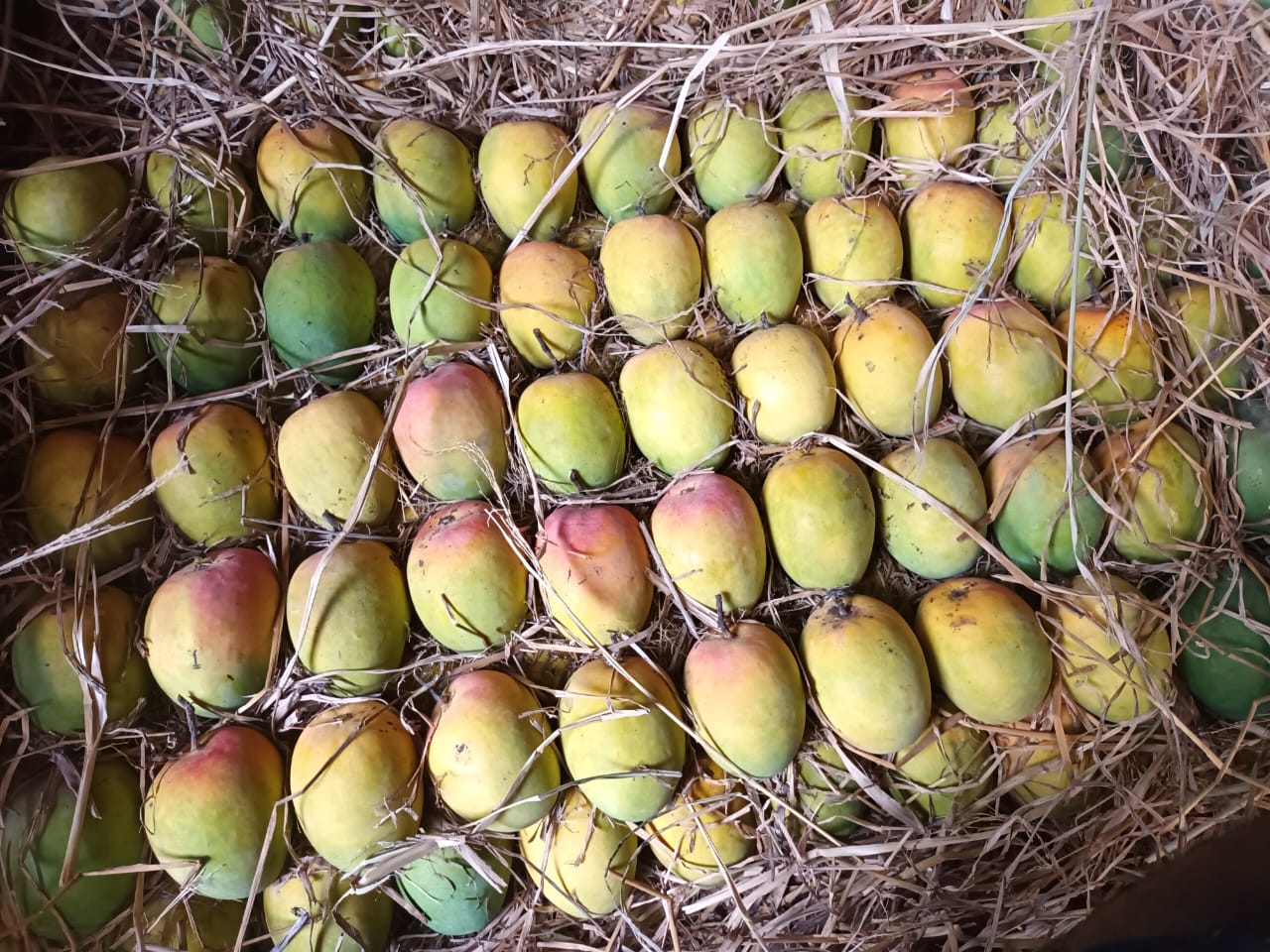 2️⃣ Soft to the Touch – Naturally ripened mangoes feel soft yet firm, with a slight give when gently pressed, especially when ripened in traditional grass hay.