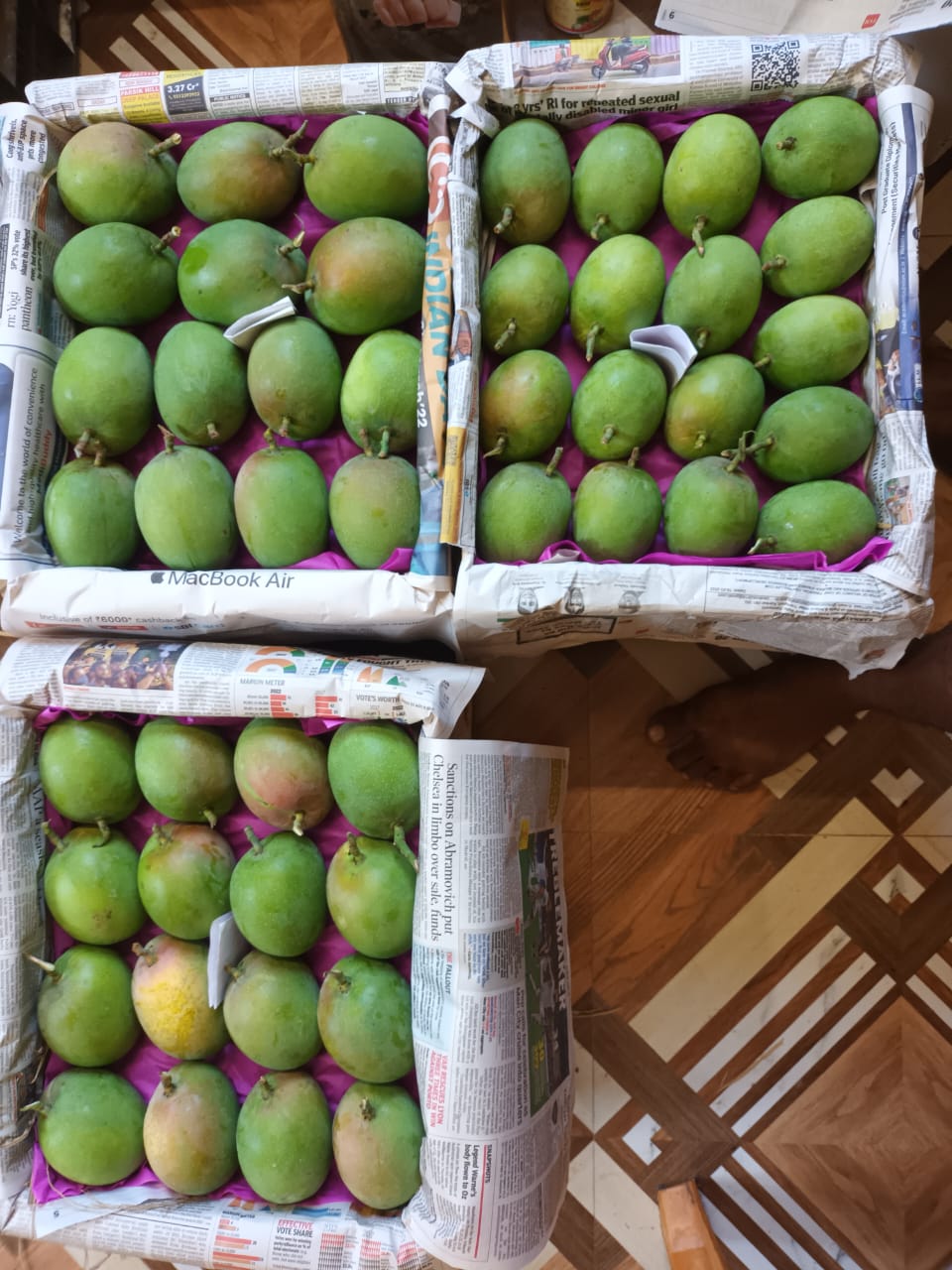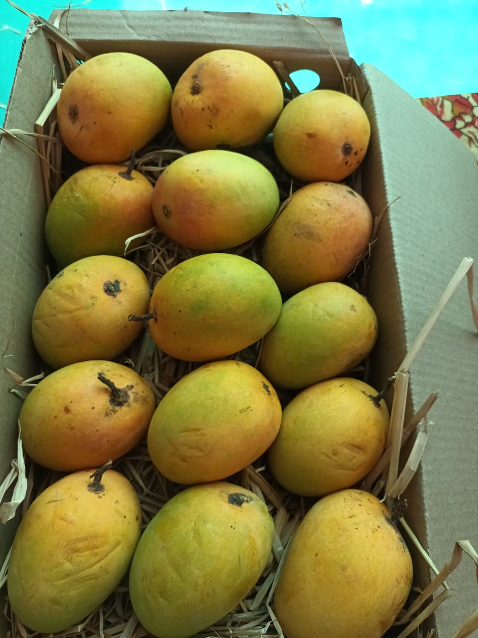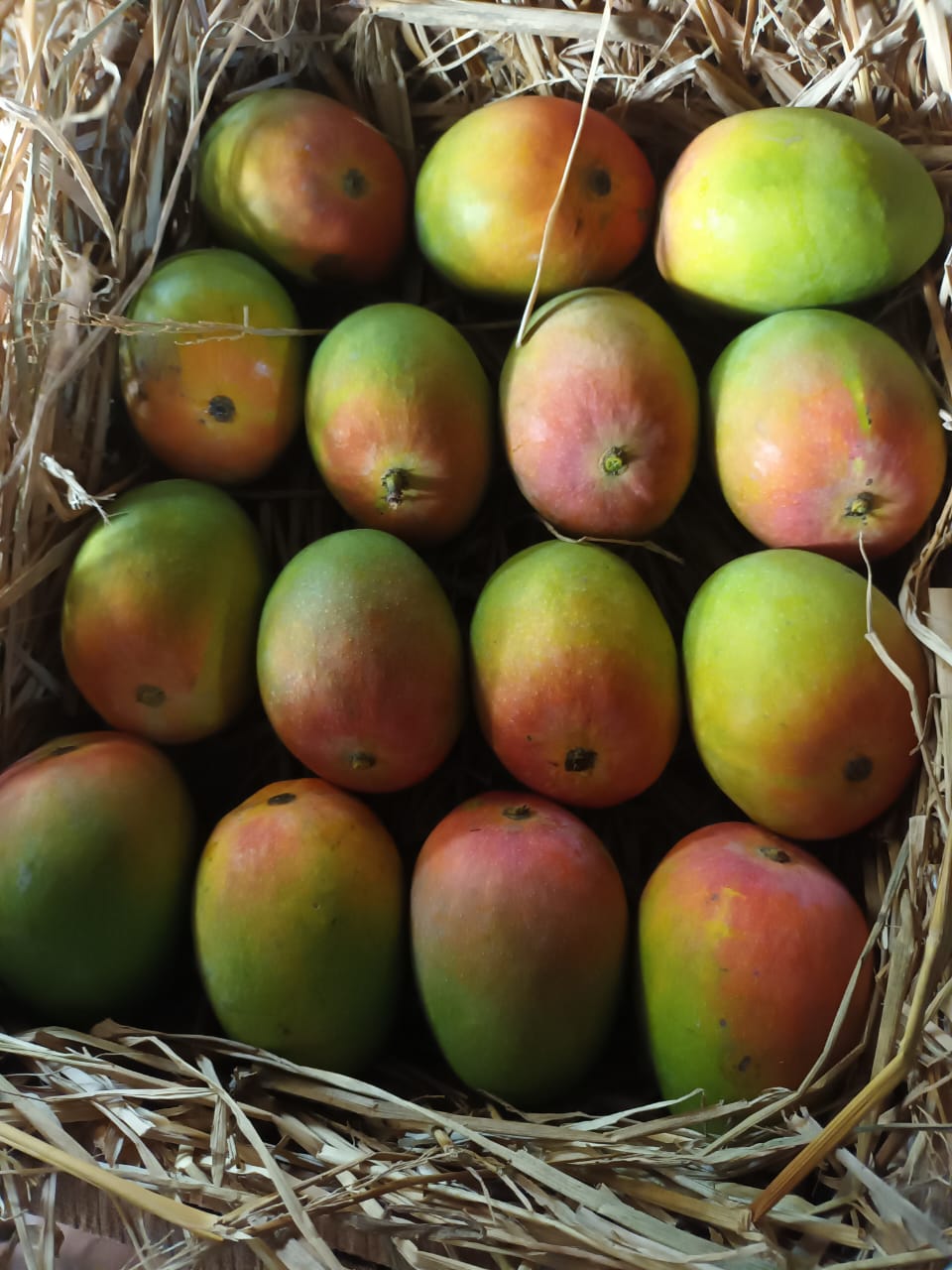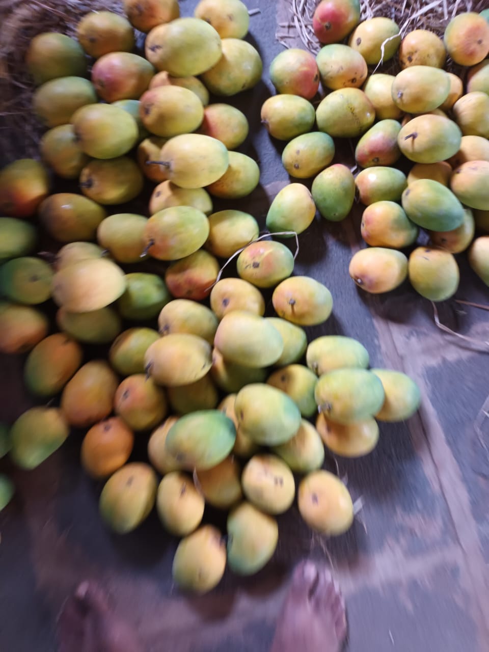 2️⃣ Soft to the Touch – Naturally ripened mangoes feel soft yet firm, with a slight give when gently pressed, especially when ripened in traditional grass hay.